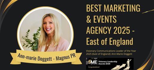 In August, Magnus PR’s owner, Ann-Marie, was honoured with the title of Best Marketing & Events Agency – East of England 2025 🏆.